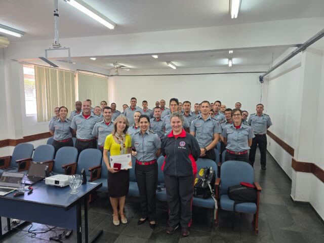 Figura 2 – Lilia Gomes foi convidada pelo Corpo de Bombeiros Militar de Minas Gerais para ministrar uma palestra no Curso de Especialização em Gestão e Proteção e Defesa Civil