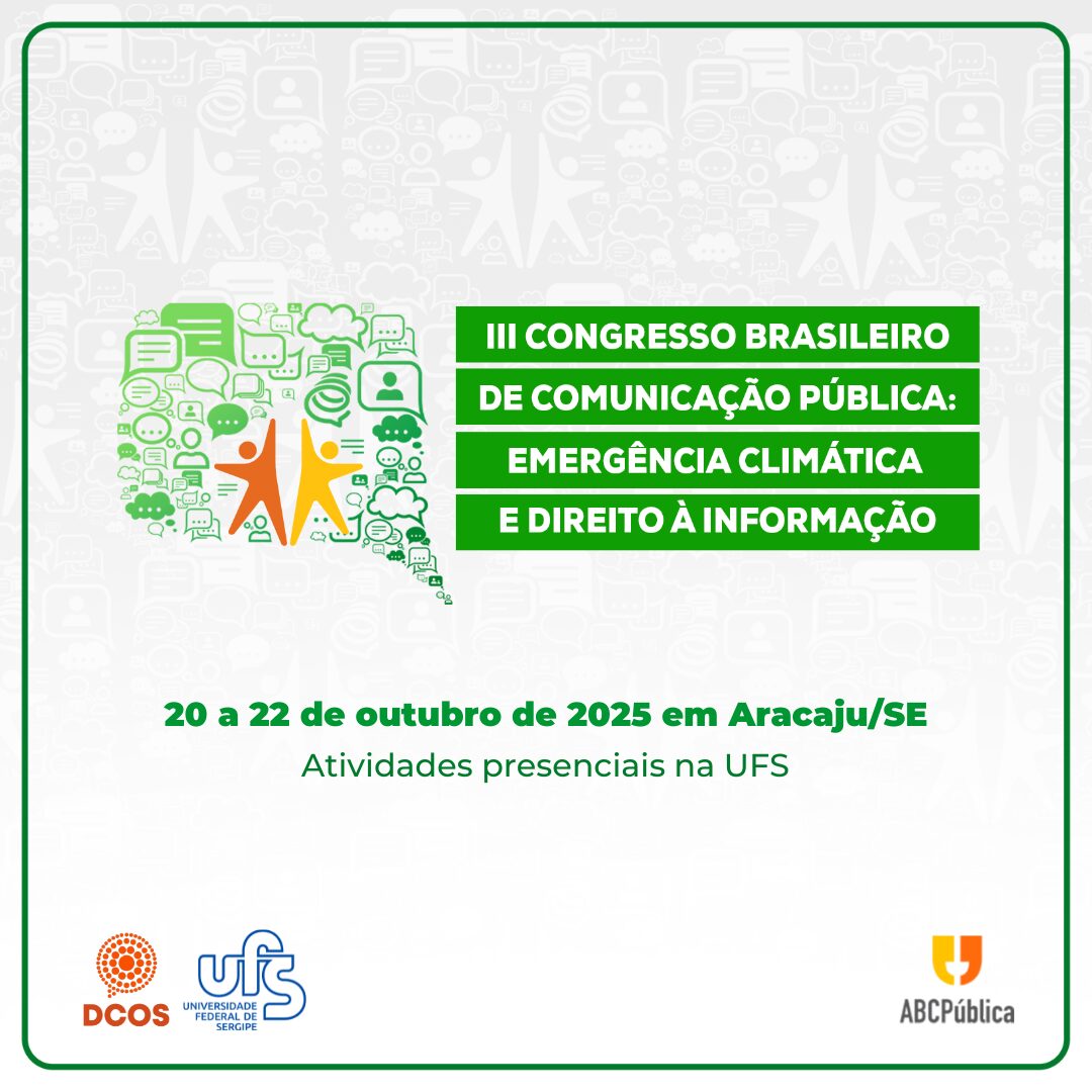 Em outubro de 2025, será realizado o III Congresso Brasileiro de Comunicação Pública (III ComPública) no Campus São Cristóvão da Universidade Federal de Sergipe (UFS). O evento discutirá diversos temas relevantes para a comunicação pública no Brasil, com ênfase no papel dos profissionais de comunicação frente à emergência climática e no direito à informação. O congresso é destinado a estudantes, pesquisadores e profissionais da área.