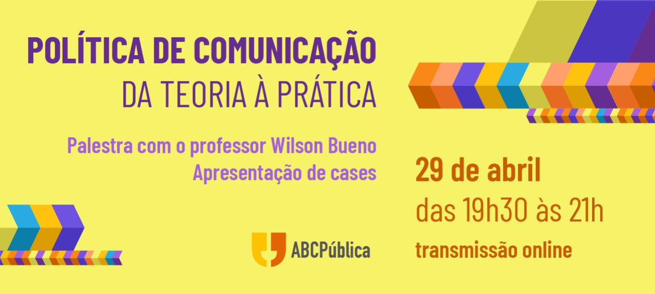 A Associação Brasileira de Comunicação Pública (ABCPública) promove, no dia 29 de abril, das 19h30 às 21h, o evento “Política de Comunicação: da teoria à prática”, com transmissão online e participação gratuita mediante inscrição. Voltado a profissionais, gestores e pesquisadores da área, o encontro busca debater caminhos para a formulação e implantação de políticas de comunicação em instituições públicas.